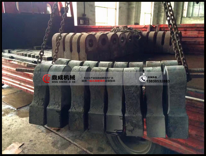 鼎成細碎機錘頭采用高鉻26合金、高鉻高釩28合金、高鈦35合金,或者根據(jù)工況條件特殊配料,根據(jù)客戶來圖來樣定做各類異形細碎機錘頭。鼎成高鉻錘頭做工細膩,配料嚴謹,熱處理到位,細碎機高鉻錘頭使用壽命比同類產(chǎn)品耐磨50%以上。