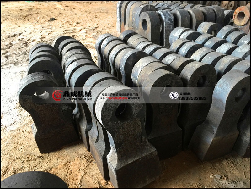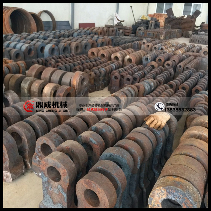 鞏義鼎成專注高鉻復合錘頭、破碎機配件研制生產,鑄造雙金屬復合錘頭經驗豐富,材料選用優良高鉻合金,工藝采用消失模真空鑄造,將兩種不同性能的合金在液液狀態下連續澆注一次成型,復合面為高強韌結構鋼;因而高鉻合金復合錘頭有很高的抗磨功效,又有可靠的安全性能,使用壽命比傳統材料提高3-5倍!